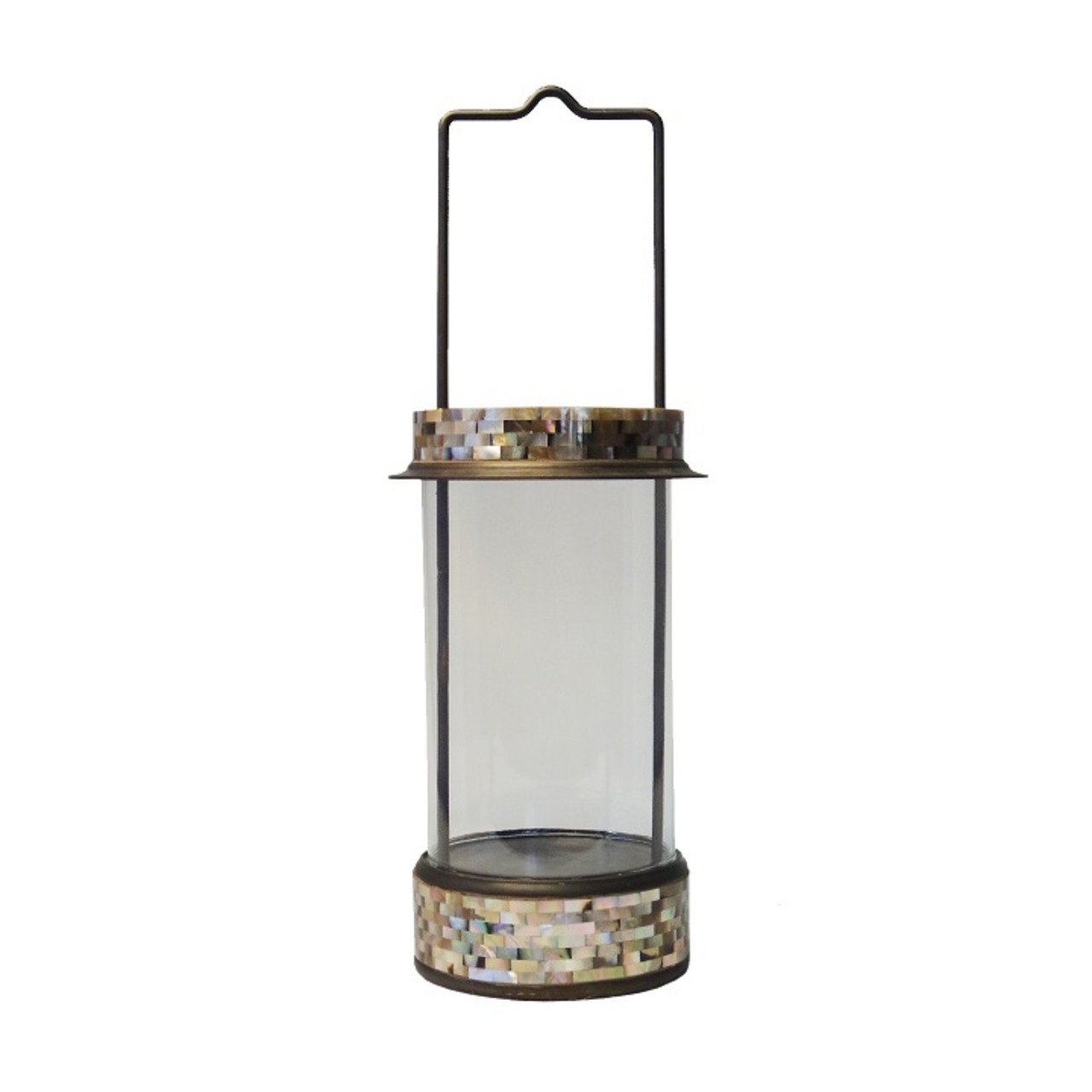 真鍮製の本体にマザー・オブ・パールをモザイク状に配した美しいランタン。