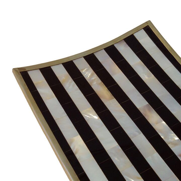 マザー・オブ・パールと水牛の角のストライプが美しいトレイ。